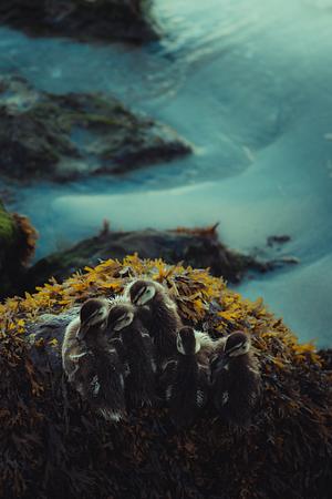 5 siblings nested on an algae covered rock by the shore. May 2024.